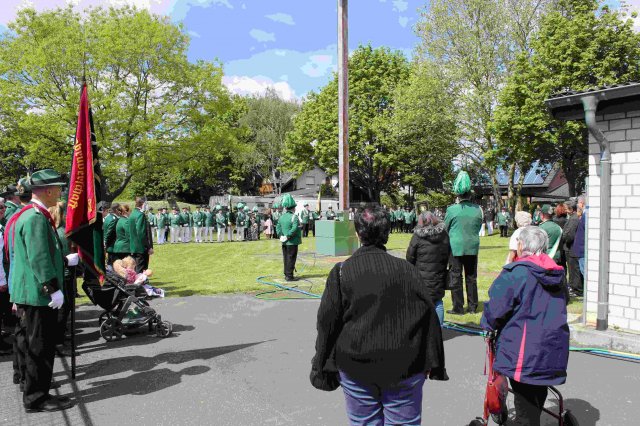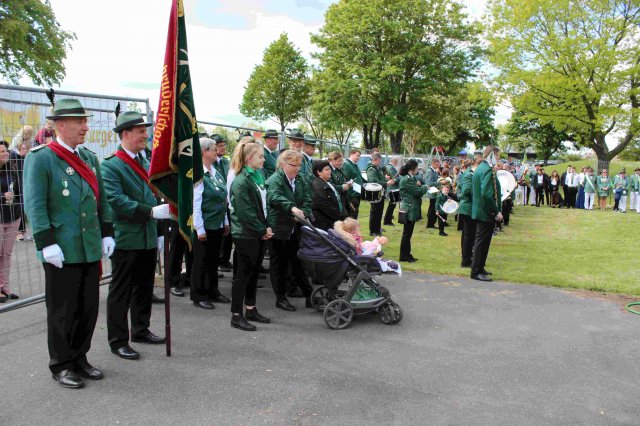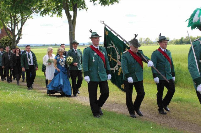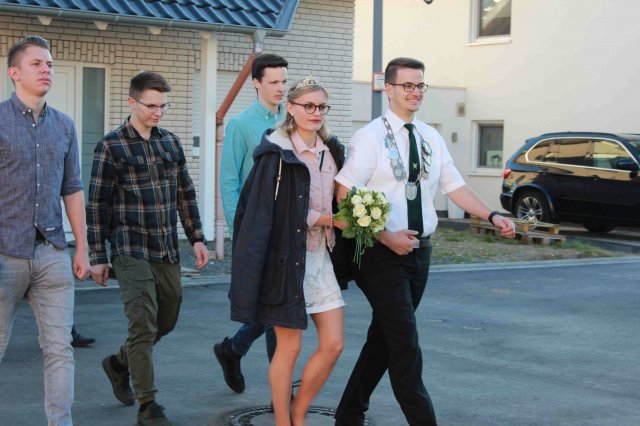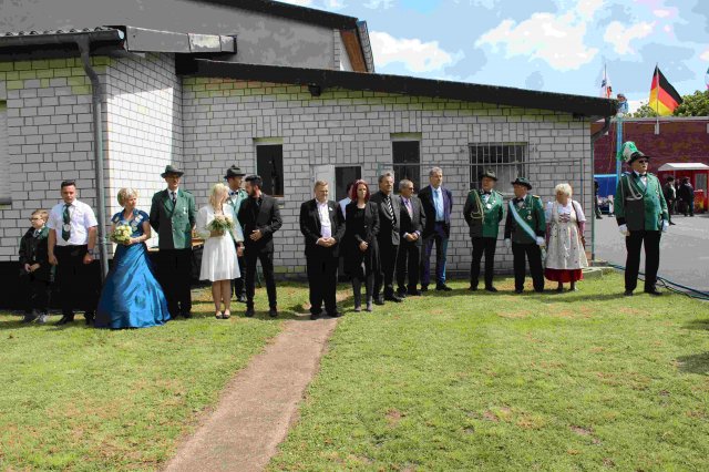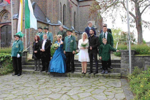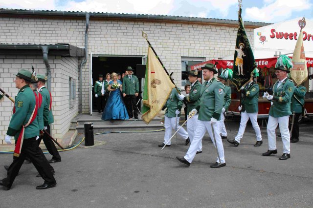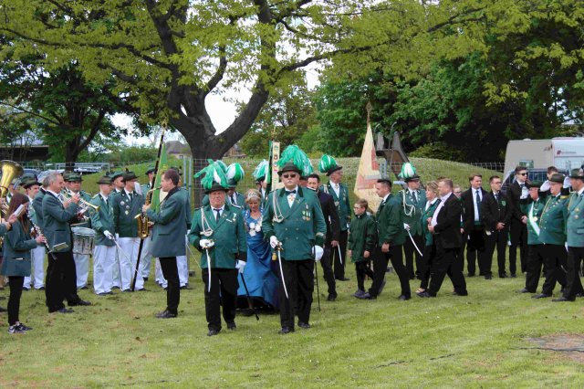 Vorbeimarsch an der KircheVorneSchützenkönigin Irene JansenJungschützenkönigin Alexandra ElsigSchülerprinz Can AriganBambiniprinz Tim KremerBürgerkönig Matthias ReinigHintenKaiser Karl HofmeisterBezirksbundesmeister Udo NoldenStellv. Bürgermeister Andre HeinrichsRatsmitglied Heiko KusserowOrtsvorsteher Bernd Essenstam