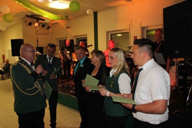 Majestäten und Ehrengäste nach dem FestzugVon links nach rechts:Bambiniprinz Tim KremerSchülerprinz Can AriganSchützenkönigin Irene Jansen mit EhemannJungschützenkönigin Alexandra Elsig mit PartnerDahinter Bezirksbundesmeister Udo NoldenBürgerkönig Matthias Reinig mit EhefrauStellv. Bürgermeister Andre HeinrichsOrtsvorsteher Bernd EssenstamRatsmitglied Heiko KusserowPräsident Karl HofmeisterEhrenpräsident Johann Langen mit Partnerin