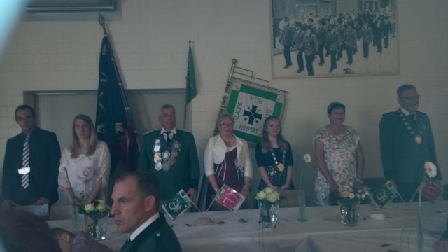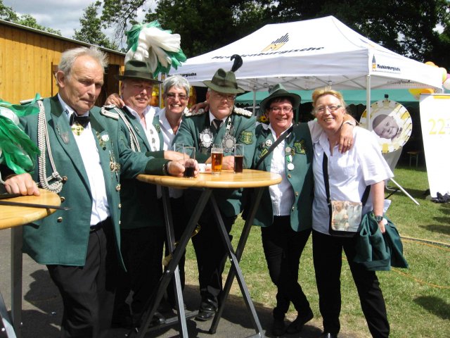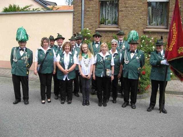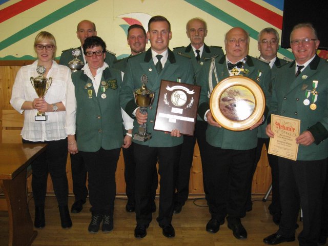 Sieger und Ausgezeichnete beim HubertusessenVorne (von links nach rechts)Alexandra ElsigChrista ElsigBastian Hofmeister (Vereinsmeister)Hans Wollersheim (Ehrenscheibe)Christian Goertz (50 Jahre Mitgliedschaft)Hinten (von links nach rechts)Bert ElsigFlorian HofmeisterLothar FaltinArnd Wirtz